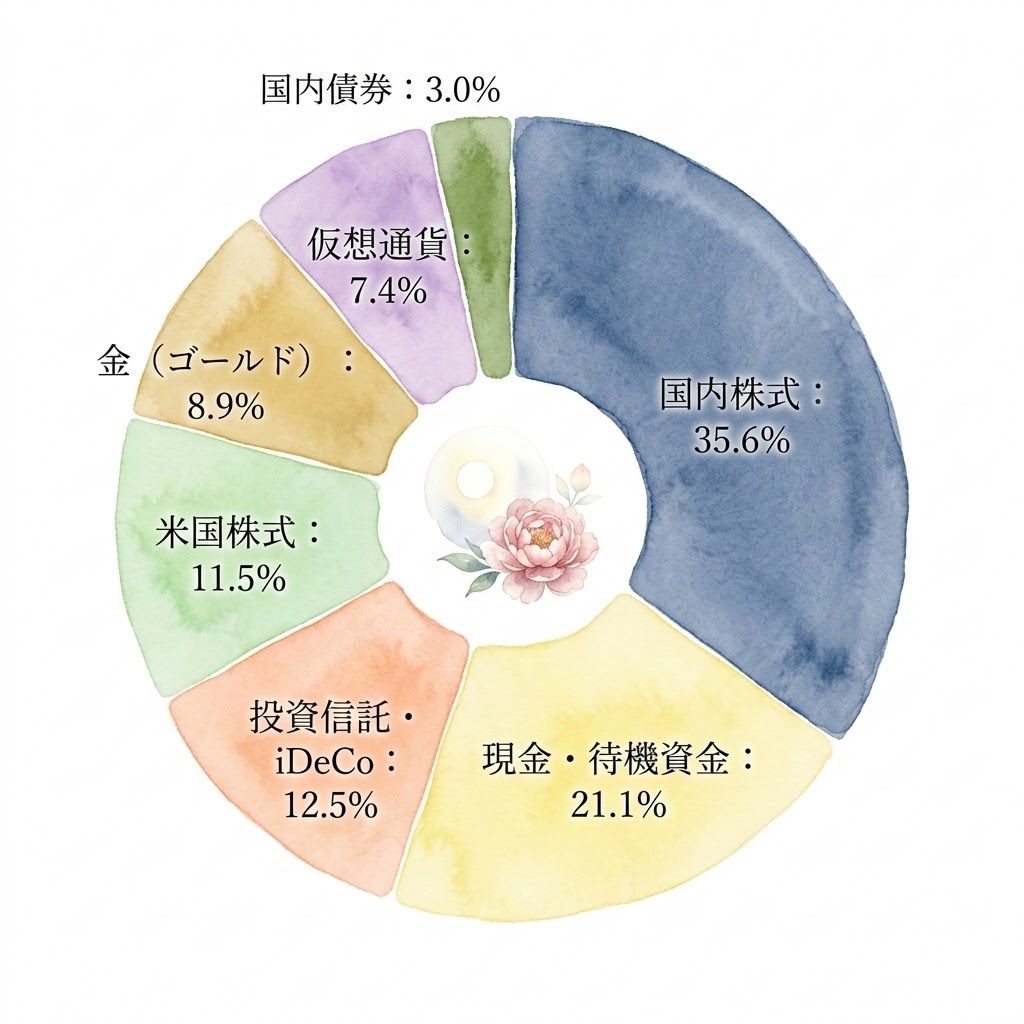 A:はい!と言いたいところですが。実は……個別株から仮想通貨、金までごちゃ混ぜの『リアルなポートフォリオ公開』なんです(笑)。でもね、この中には住宅ローン金利から家計を守る『最強の盾』が隠されてるんですよ。今日は特別に、家族の共有資産の内訳をガチ公開しちゃいます!